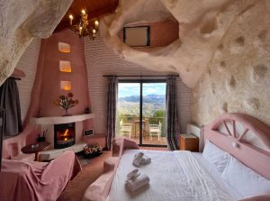 Ο ΞΕΝΩΝΑΣ ANEMOESSA Χτισμένος στα Μεσαία Τρίκαλα Κορινθίας 1000m. υψόμετρο και 300m από την κεντρική πλατεία, αντικρίζοντας τη μοναδική θέα στον Κορινθιακό κόλπο και στις πλαγιές του όρους Ζήρεια, ο ξενώνας Ανεμόεσσα φέρνει μια φρέσκια χαλαρωτική πινελιά σε δωμάτια που έχουν στρώσει τα κρεβάτια τους μέσα σε σπηλιές και βράχους προσφέροντας μια ρομαντική, παραμυθένια εμπειρία φιλοξενίας.
